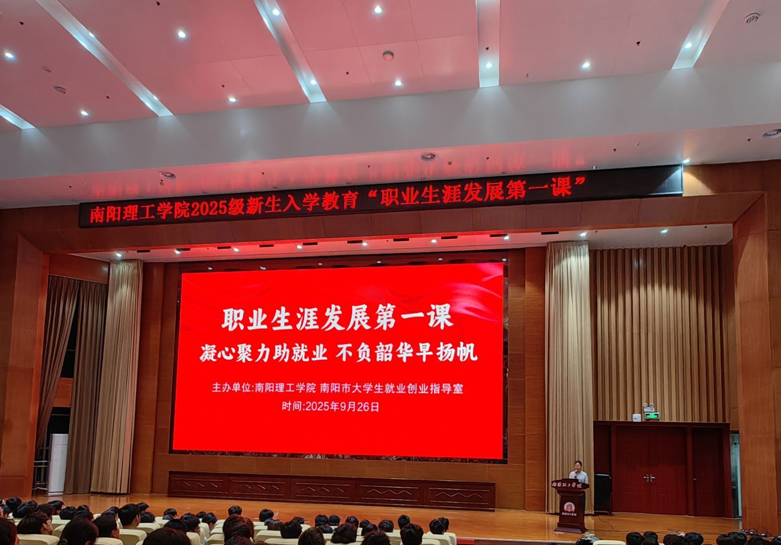 (特约记者 常雪瑞 杨世昌)9月23日-26日,南阳理工学院在音乐大厅、毕业大厅、第三报告厅举办了 2025 级新生“职业生涯发展第一课”系列活动,本次活动以“凝心聚力助就业、不负韶华早扬帆”为主题,覆盖2025级全体新生,通过系统化、特色化的职业启蒙教育,帮助新生完成角色转换、探索职业发展方向。