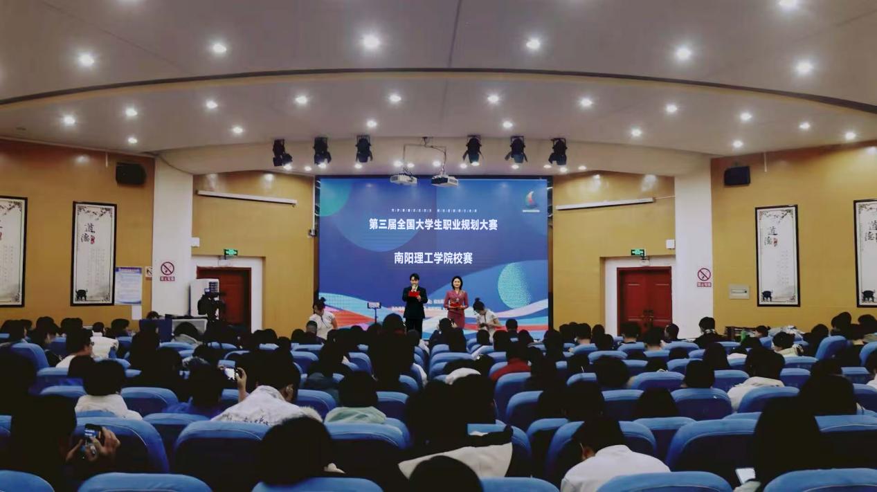 本网讯(学生记者/学通社 刘奥云)12月21日,第三届全国大学生职业规划大赛南阳理工学院校决赛在第二报告厅举行。副校长蔡广宇,各学院相关负责人、就业专干、指导教师及学生代表300余人共同观摩赛事。
