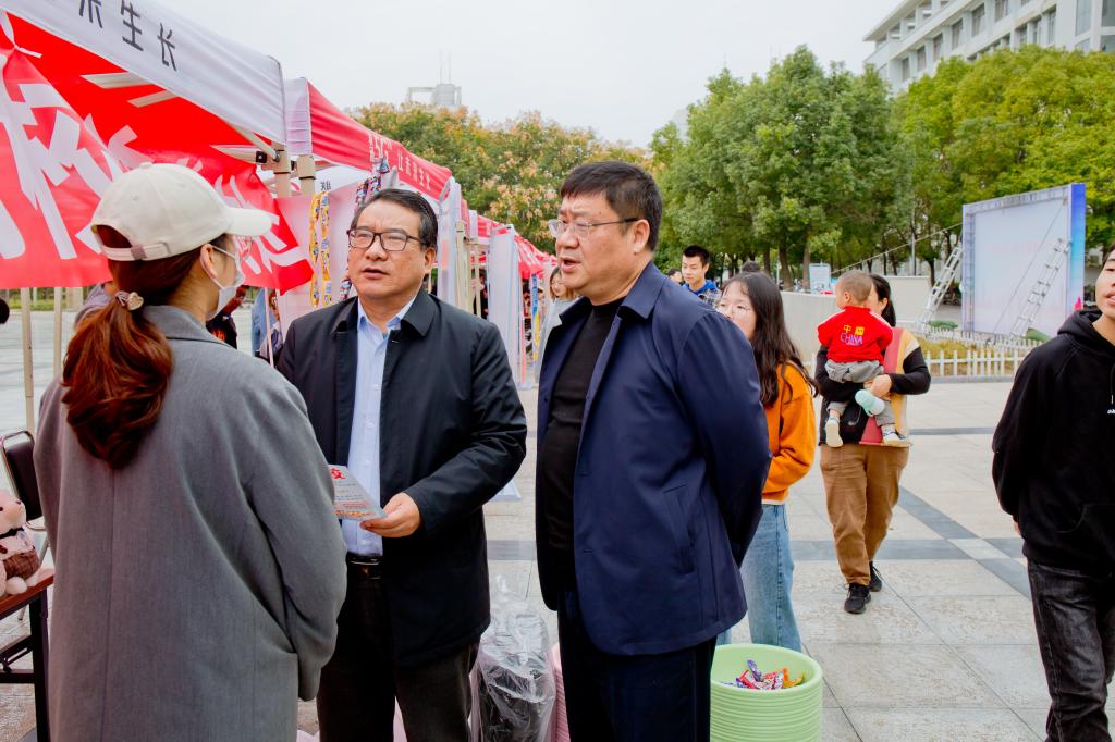 本网讯(记者/李春燕)10月22日,我校举办2021年度大学生创新创业孵化园创意集市,副校长葛晨光、招生就业处负责人出席活动现场,对各创业团队进行指导。