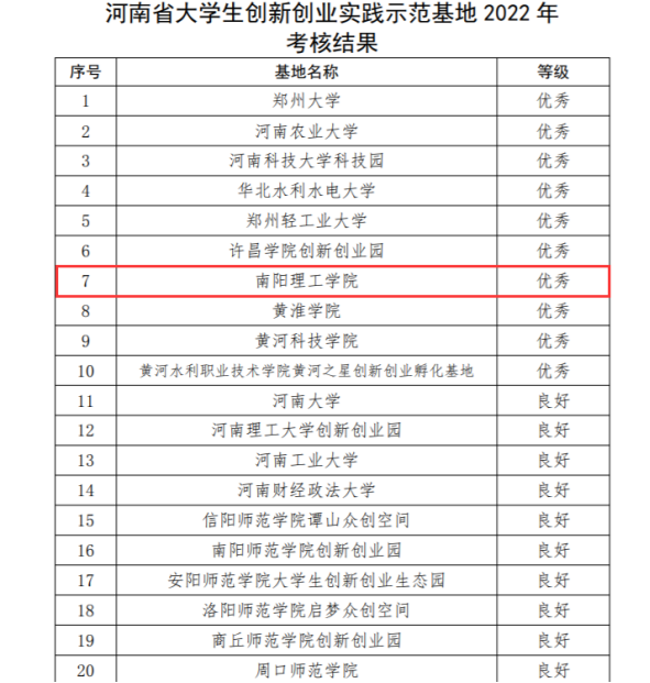此次在创新创业示范基地考核中获评优秀,凸显了我校引导大学生开展创业实践、深化大学生创新创业教育模式改革的成效。未来,我校将继续践行“立本、立真、立特、立新”的办学理念,植根南阳、服务河南、面向全国,整合各方资源,持续打造创新创业共同体,构建产教融合新生态,助力大学生自主创业,为推动地方经济发展、建设河南省副中心城市贡献积极力量!
