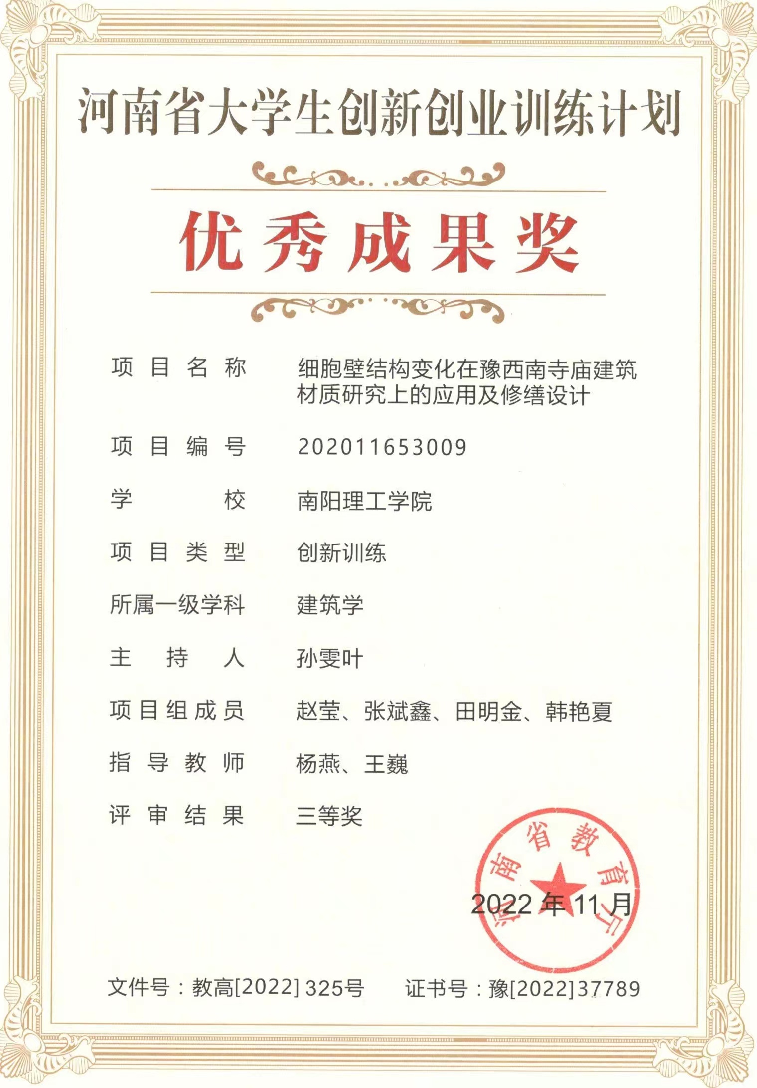 我校将以此次获奖为契机,继续高度重视大学生创新创业训练计划的实施,加强导师队伍建设和项目过程管理,提升项目建设质量,推进创新创业实践教学模式改革,实现专业教育与创新创业教育的有机结合,持续激发大学生的创新创业潜能,为推动地方经济发展、建设河南省副中心城市贡献积极力量!